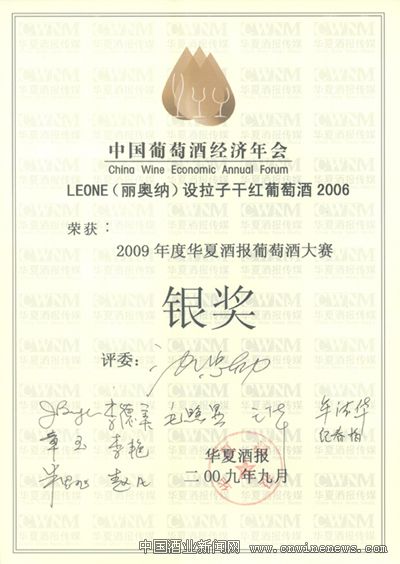 近日举办的第三届中国葡萄酒经济年会上,来自澳大利亚的丽奥纳(LeOne)系列葡萄酒在大会组织的“2009华夏酒报葡萄酒大赛”上荣获4项大奖,成为本次大赛获奖最多的品牌。本次大赛共有中外葡萄酒生产经营企业的93款酒品参赛,其有4款产品获得金奖,10款产品获得银奖,16款产品获得铜奖,还有2款产品由于独具特色,被评委会推选为特色产品奖。