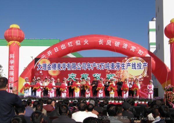10月28日,云南大理金穗麦芽有限公司举行开工庆典仪式。中国酿酒工业协会啤酒原料专业委员会秘书长白普一,云南大理州、大理市有关党政负责人和有关部门负责人,设备制造厂负责人以及部分大麦供应商等250余人出席了庆典仪式。