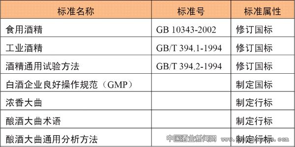 表2 正在组织制修订的白酒行业产品及相关标准(已下达计划)