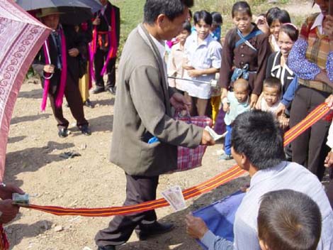 The former is a symbolic ceremony to show their decision to get married. The man will appoint several friends to wait for the woman. When the woman goes out of her home, they will go off with the woman. The woman's brothers will chase the group of people, when they find she has disappeared, up to the man's home. Then, the man's family should treat the people from the woman's side, who are in the chase, with a big feast or even give some gifts like money to them.
