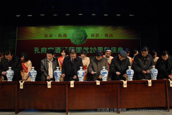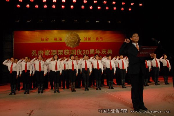 12月8日,孔府家酒荣获国优20周年庆典·通过纯粮酿造现场验收暨2010年经销商大会在山东曲阜孔子文化会展中心隆重举行,中国食品工业协会白酒分会副会长、秘书长马勇,中国酒类流通协会副会长、秘书长刘员,演艺界明星王姬、付笛生、任静,以及来自全国各地的白酒专家、孔府家酒核心经销商1600余人齐聚圣城曲阜,与孔府家人共庆盛典。