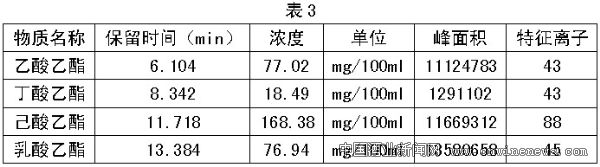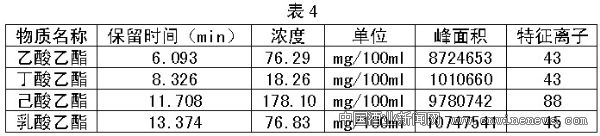 数据分析:本实验是采用选择性离子扫描,应用乙酸正丁酯为内标做的白酒微量成分的常规定量,以古贝春集团有限公司生产的浓香型白酒中的四大酯为例来做的结果分析,比较具有代表性。使用的方法是内标法定量。
