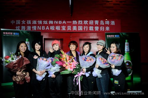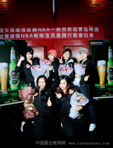 “那不是在NBA赛场上表演的中国啦啦队宝贝吗?” 12月24日下午,由青岛啤酒股份有限公司营销总裁严旭和青岛啤酒股份有限公司副总裁孙玉国带领的6名啦啦宝贝一下飞机就被机场的乘客认了出来。这支中美啦啦文化的交流团在美国开展了为期11天的中美啦啦文化交流活动,并代表中国第一支啦啦宝贝在美国NBA赛场进行了首次啦啦舞表演,开创了中国啦啦队走向国际舞台事业的新历程。24日下午他们载誉归国,受到了媒体及大众的广泛关注。
