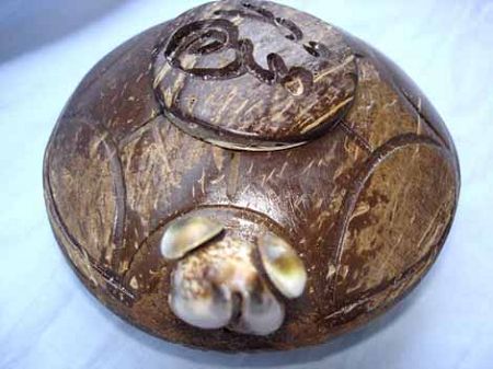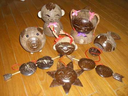 Hainan coconut carvings create craftwork from coconut shells by carving craftsmen in Hainan Island. The coconut carvings are of different patterns, are simple and elegant in color, and have a specific artistic style. As early as the end the Ming Dynasty and the beginning of the Qing Dynasty, coconut carving craftwork reached a high standard. In the following 300 years, craftsmen gradually developed the craftsmanship into perfection after their continuous hard work, and they finally formed their own specific style.
