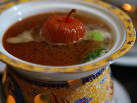 Exquisite dinnerware serves as an accent to tasty dishes and adds glory to banquets. Today, people can see the exquisite dinnerware from Confucius' mansion, including silver and porcelain sets. Many sets are uniquely shaped and are very beautiful. Some dinnerware was especially designed and made for special dishes. The Tan Family Food Restaurant in Beijing has many specially designed sets, such as the plates for shark's fin, which are slightly higher in the center to make the shark's fin more appealing.