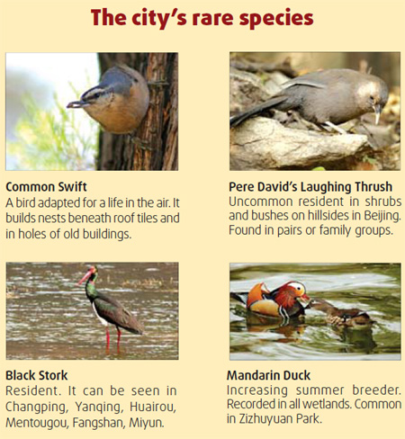 "The best place to go is to parks in the city or to the outskirts of the city, where chances at seeing a rare bird are much higher," said Fu Jianping, president of the Beijing Bird Watching Society.