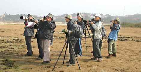 Members of the Beijing Bird Watching Society out on location in Beidaihe. Zhang Chaohui