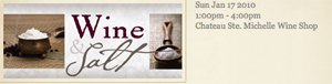 Chateau Ste. Michelle is having its premiere wine and salt tasting. Its not so much a lecture but more of a 'walk around' while you sample wines and savory salt pairings. Take advantage of the 20% wine discount on your purchases while there.