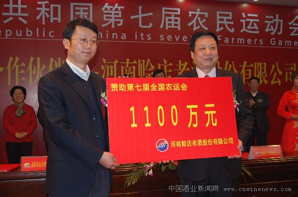 1月16日,河南赊店老酒股份有限公司与中华人民共和国第七届农运会筹委会正式签约,赞助1100万元全力支持农运会的筹办工作,成为第七届农运会第一家合作伙伴。