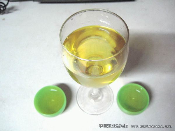 杨先生将其中一件打开,发现里面果然有液体,倒出瓶内液体后,杨先生闻到了一股淡淡的葡萄香味。液体呈金黄色(见图2),流动性强,晶莹透明,在玻璃杯上挂杯明显。对光观察,有少量结晶物,入口醇厚,略有甜味,爽口不暴。按《草木子》上记载的检验方法,杨先生将液体置于零下5度约24小时左右,未见结冰现象。杨先生初步估计瓶中液体应该是葡萄酒。
