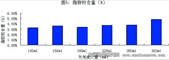 通过对发酵第3天的主酵液中补加部分麦汁续发酵(以实验容积为3升的实验考察),来探讨酵母细胞脂肪粒在发酵过程的变化,具体见图5。