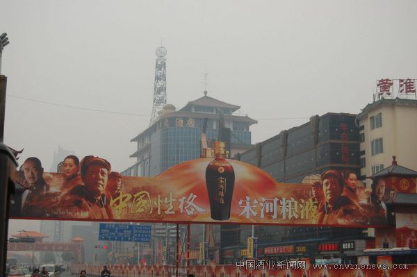 2009郑州秋季糖酒会上,宋河粮液——中国性格的宣传片在郑州市繁华地段矗立。