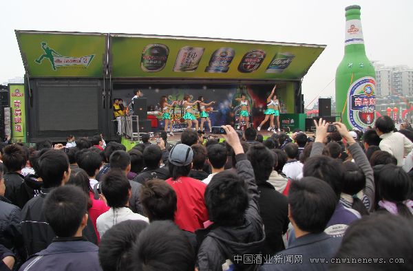 为了在赛场外的比赛中占得先机,青啤可以说下足了工夫。早在1个月前,青啤就开始在餐饮、商超渠道布置马拉松宣传,开展促销活动。在比赛当天,以“激情一灌到底”为大门的“绿色部落”的成为人气最旺的品牌展示区。青啤还邀请了今年红遍全国、刚刚从美国NBA赛场归来的青岛啤酒“炫舞激情”NBA啦啦宝贝,到场为比赛鼓劲助威,引来了周围围观群众的驻足观看,成为赛场之外最迷人的风景线。激情反射、无动力投篮、激情高尔夫、激情碰撞等小游戏吸引了数万计的运动爱好者参与。而“百年青啤文化展示”能让人在观看舞台表演的同时,感受百年社会变迁中青啤文章来源中国酒业新闻网基业常青的魅力。