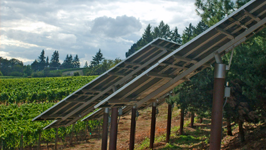 SUN-POWERED: A 25-kilowatt solar system provides a third of the winery’s power. (Photos: Marsha Walton)