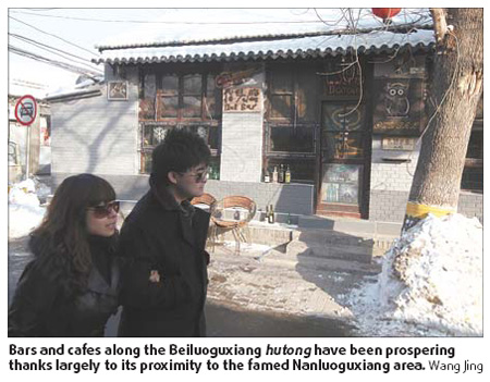 A bar opening tomorrow on Beiluoguxiang is the latest example of a growing trend that has seen shops take advantage of the street's proximity to Nanluoguxiang (NLGX) Pedestrian Street, minus the cost, the kitsch and the chaos.
