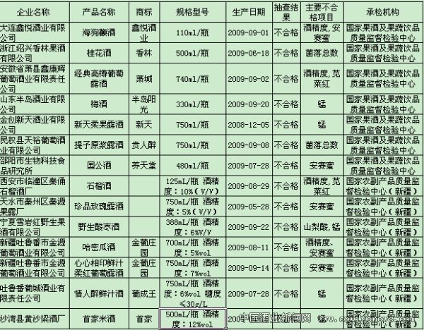 文章来源华夏酒报14种白酒以及金创新天酒业有限公司生产的新天牌新天柔等14种果(露)酒产品的个别质量指标检验结果不符合相关标准规定