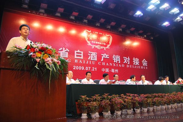 去年7月,为帮助酒类企业应对金融危机,扩大销售、保增长,促进白酒企业之间的交流,搭建白酒产业的供需交流平台,安徽省经信委、安徽省国资委、安徽省委省政府接待办和亳州市人民政府联合主办了以“贡献 共享,为安徽崛起干杯”为主题的安徽省白酒产销对接会。