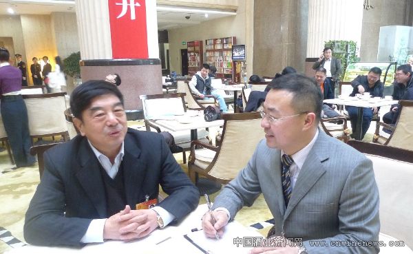 全国人大代表、烟台张裕集团有限公司党委书记、董事长孙利强(左)接受《华夏酒报》记者采访