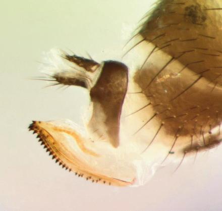 The spotted-wing drosophila's fearsome saw-toothed ovipositor is what makes it so damaging to grapes and other fruit.