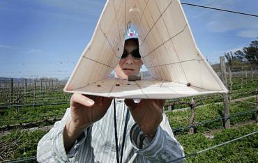 Monica Cooper, Napa County's viticulture farm adviser, finds two European grapevine moths in a Napa County winery trap. The moths are just emerging from their cocoons and feed on wine grapes.