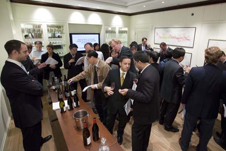 “We have just dispatched Jasper Morris MW, our Burgundy Buyer, back to his home in the Côtes of Burgundy, having completed our second Burgundy Week in Hong Kong. The week, which consists of master classes, interviews, dinners and tastings included the first tasting in Hong Kong of the 2008 Burgundies en primeur (and perhaps the first Burgundy primeurs tastings in Asia – left) as well as a thoughtful and thoroughly enjoyable look at the 1996 vintage of Domaine de la Romanee Conti, at a dinner organised in conjunction with American Express for 15 people last Friday night.