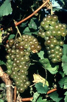 A hybrid of Seyval Blanc and Chardonnay grapes, Chardonel is serving as the test variety for Marco Li Calzo's experiments with different grapegrowing practices. |