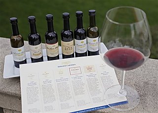 This photo taken Jan. 29, 2010 shows TASTE which is a small six-bottle tasting kit with tasting notes beside a glass of Pinot Noir at the Domaine Carneros winery in Napa, Calif. The small kit helps remove uncertainty about wines for consumers and trade buyers. (AP Photo/Eric Risberg)