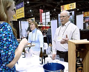 In this photo taken March 28, 2010, Kathy Shiels, center left, and Hugh Shiels, right, pour wine during a tasting event in Seattle. The couple built Cote Bonneville winery to create and sell world-class wines, and now their 650-plus competitors in Washington state are seeking ways to distinguish themselves. (AP Photo/Shannon Dininny) |