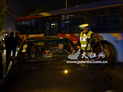 9日,南昌市交管局在全市主要路口设卡,开展酒后驾驶专项整治行动。此次整治行动,是自4月1日新《机动车驾驶证申领和使用规定》颁布以来,首次在全市范围内开展的酒后驾驶专项整治行动。当日20时许,记者来到福州路与展览路交界处,交警正在对过往车辆进行拦停检查。