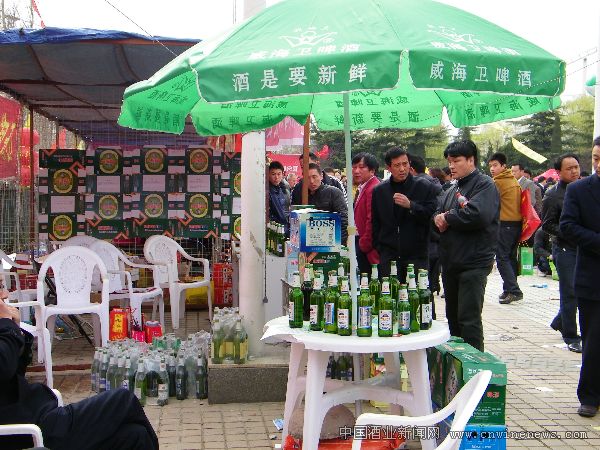 在本次山东省春季糖酒会上,山东威海卫酒业集团有限公司改变了过去啤酒、白酒文章来源华夏酒报、葡萄酒同台展出的割据,将展览重点放在了啤酒方面,在威海卫酒业展位前布满了该企业所有的啤酒系列产品,并大力宣传“酒是要新鲜”的消费理念。