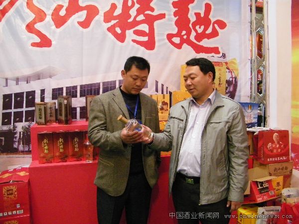 山东金彩山酒业有限公司一直注重展会经济,把每一次山东糖酒会当成展示产品和拓展市场的平台。图为公司负责人在山东省春季糖酒会上向山东烟台的客户介绍彩山系列产品。
