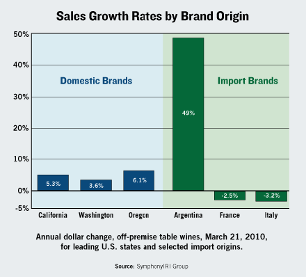 Winery sales directors who remember the early 2000s, when imports steadily ate away at U.S. market share, might be pleased to see that domestic table wines now account for 78% of the off-premise market in dollars (after dipping below 75% in 2005). Balancing this trend, however, are the weakened export figures for domestic wine recently reported by Wine Institute and others.