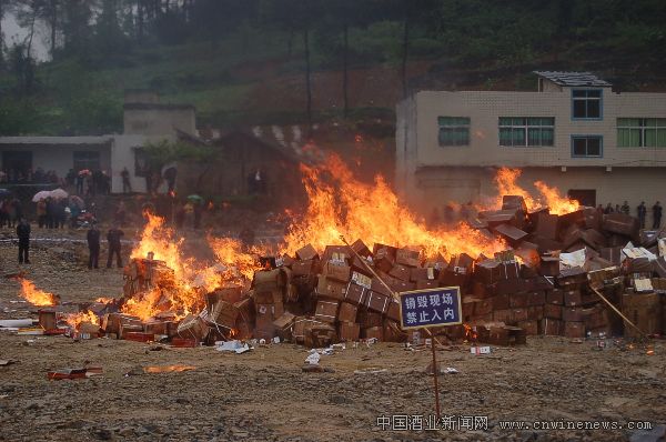 文章来源华夏酒报销毁了2008年以来查处没收的价值约5000万元的2000余瓶假冒茅台酒。图为销毁现场。