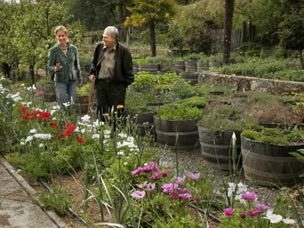 Joy Sterling and her father, Barry Sterling, in the gardens of their Iron Horse Vineyards in 2007.