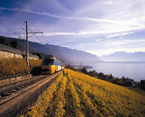 到瑞士旅游,一定要品尝当地的葡萄酒。由日内瓦往东,不到1小时车程便来到了有着瑞士里维埃拉之称的Montruex——Vevey,这是瑞士最有名的度假地,也是最重要的葡萄酒产区之一,拉沃的葡萄园去年荣升世界文化遗产名列,而我将要入住在拉沃葡萄名镇RIVAZ的一家当地最古老的葡萄庄园里。9月初晴的日子,天空很蓝,脚下蓝莹莹的湖水、对岸白雪皑皑的阿尔卑斯山,车行在枝头缀满碧如翡翠紫若水晶果实的层层叠叠的葡萄园,简直如走进了秋天的童话。