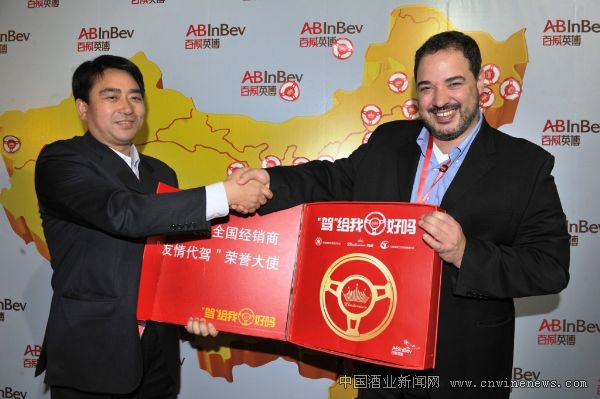 百威英博亚太区总裁傅玫凯向经销商代表颁发“友情代驾”荣誉大使证书。 近日,在百威英博新公司成立之后的第一个全国经销商大会上,来自全国各地的近400名百威英博经销商齐聚“桃源”厦门,成立中国首个由啤酒经销商组成的“友情代驾”同盟,并在印有中国地图的墙前共同承诺:做“友情代驾”大使,引领理性饮酒风尚,积极倡导酒后不驾车,助力我国道路交通安全。