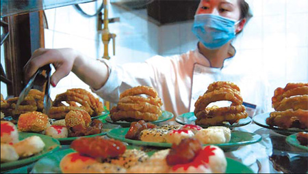 Some of these traditional "small eats" involve pork giblets that may be considered unhealthy today. But snacks such as lu zhu, boiled pork intestines and lung slices with cake in soup, and bao du, boiled beef stomach stripes, are old Beijing favorites and a must-tries.