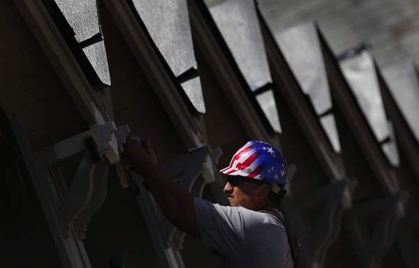 KENT PORTER/Press Democrat Tradesmen like Juan Rivera of KA Bine Construction are working to finish the renovation of Francis Ford Coppola's winery in Geyserville.