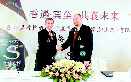 日前 ,沙龙香槟酒庄与卡慕集团远流贸易(上海)有限公司的签约仪式在上海举办,全球顶级香槟酒庄法国沙龙香槟总裁Mr. Didier 文章来源华夏酒报Depond出席签约仪式。这是97年份沙龙香槟和德乐梦香槟在中国的首次揭幕,标志着被誉为香槟帝王的奢侈品牌正式进驻中国市场,也为中国的高端酒类品牌再添一份光彩。