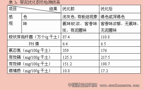 见表3:窖泥优化前后检测结果