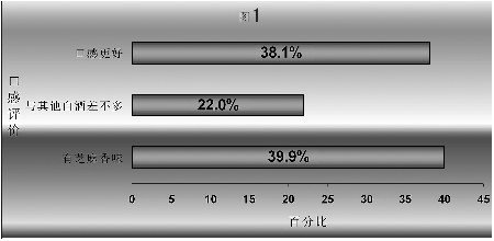 芝麻香的迅速推广并获得成功,使其独特品质获得广泛认可。表现在其口感上,有39.9%的消费人群能够在初次饮用过程中品尝出芝麻香味(如图1所示),有38.1%的消费者认为口感比其他香型白酒要好,有22%的消费者对芝麻香白酒的口感分辨不明确,认为与其他香型白酒差不多。芝麻香白酒在口感上赢得了78%消费人群的认可。