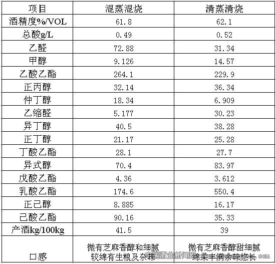 (4)、复合香型两种工艺理化指标及口感对比(见表格3)