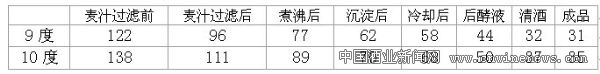 在制麦过程创造有利于β-葡聚糖酶产生的环境,设法提高β-葡聚糖酶的活性。加强麦芽的质量指标检测,通过协定糖化法对比β-葡聚糖含量,同时进行库值分析,进行大生产麦芽的合理搭配使用,尽量降低β-葡聚糖含量。采用低温下料促进β-葡聚糖的有效分解,同时添加外购β-葡聚糖酶进一步促进β-葡聚糖的分解,降低麦汁的粘度。