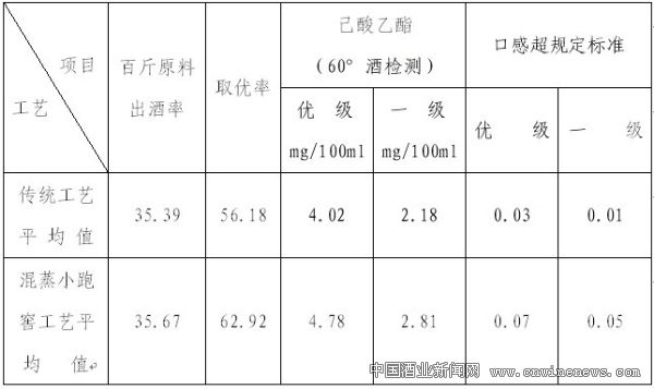 12、新工艺混蒸小跑窖3年的平均结果和传统工艺平均结果对照表(见下表)。