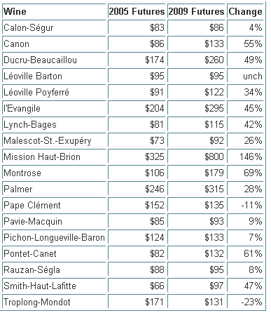 Wine 2005 Futures 2009 Futures Change