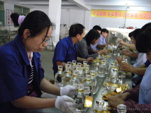 窖藏酒,一直引领当地高端白酒消费的潮流,今年进入夏季以来,该产品依然呈现旺销的局面。图为公司职工在生产宝石级窖藏彩山酒。
