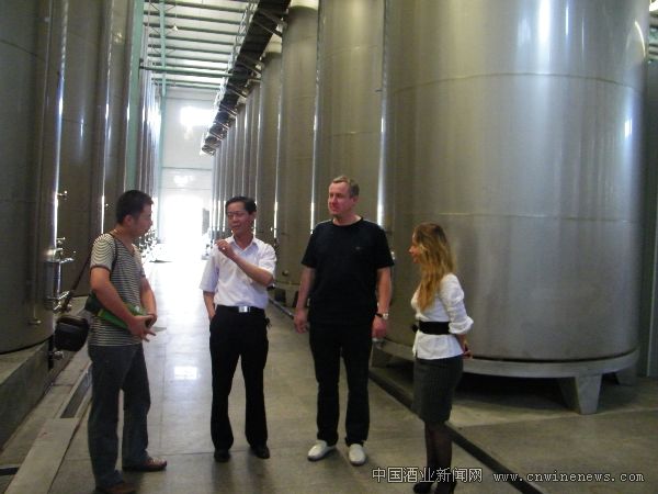 日前,乌克兰ANST.NABUINA公司总裁Busina.demant一行来到山东蓬莱华鲁酒业有限公司参观考察。近年来,蓬莱葡萄酒产区的葡萄及葡萄酒行业发展迅速,华鲁酒业公司作为较有影响力的企业之一,受到了国内外众多客户的关注,纷纷前来洽谈相关合作事宜。图为蓬莱华鲁酒业公司董事长曲德家向乌克兰客人介绍企业情况。