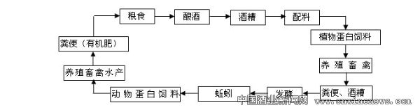 (2)酒糟植物蛋白饲料转化动物蛋白饲料的循环过程。