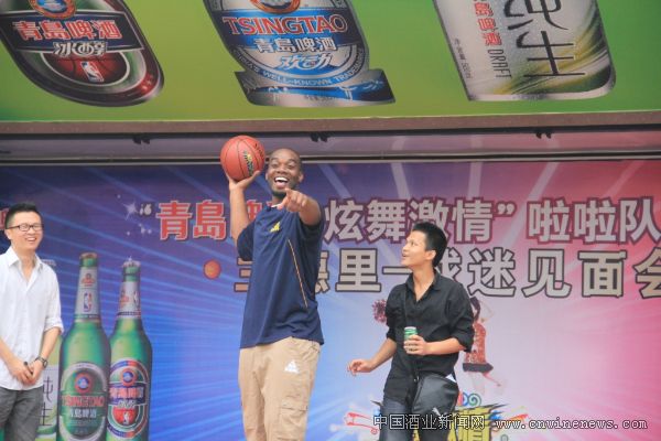活动现场青岛啤酒大篷车舞台上的花式篮球等表演也让球迷大呼过瘾。尤其是NBL联赛青岛啤酒啦啦宝贝的火辣劲爆表演,一上台立刻点燃了现场氛围,连一旁观看的兰德里也赞不绝口:“我在美国就很喜欢青岛啤酒,这次很荣幸能够参加青岛啦啦队选拔赛,中国姑娘们的表演也很精彩,我很开心。这也让我更加喜欢青岛啤酒,回去我会把我的经历告诉我的朋友们,也希望更多的中国姑娘们能来NBA的舞台上一展舞姿。”