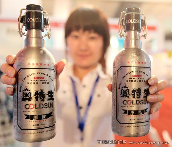 天的2010中国国际酒业技术博览会在北京中国国际展览中心开幕,集中展示国内外知名企业的各种设计新颖、科技领先的新产品、新设备。创新环保、节能减排是本次展会的看点。图为北京一厂家工作人员展示新推出的可循环使用的不锈钢啤酒罐。